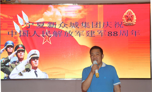 當(dāng)晚,集團(tuán)公司舉辦了慶祝建軍88周年聯(lián)誼活動(dòng),集團(tuán)雷光新董事長(zhǎng)在聯(lián)誼活動(dòng)上發(fā)表重要講話,他表示:軍隊(duì)是一個(gè)大熔爐,是一所大學(xué)校,培養(yǎng)了一代又一代的人才,是部隊(duì)讓我們從五湖四海為了同一個(gè)夢(mèng)想走到了一起,讓我們團(tuán)結(jié)起來(lái),為寧夏新眾城集團(tuán)的明天而努力奮斗!